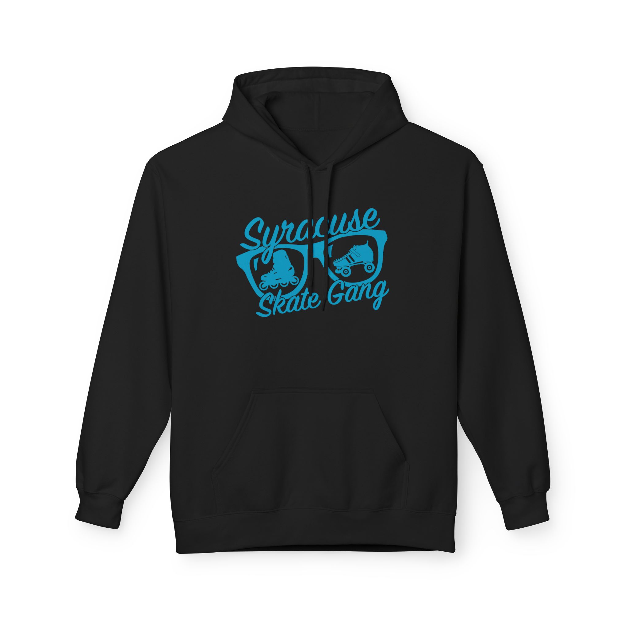 This cozy hooded sweatshirt fits comfortably loose in unisex sizing. Made from an 80% ring-spun cotton/20% polyester blend, featuring dropped shoulders and ribbed cuffs and bottom hem with a convenient pouch pocket and color-matched hood drawstring. Available in black printed with turquoise only.