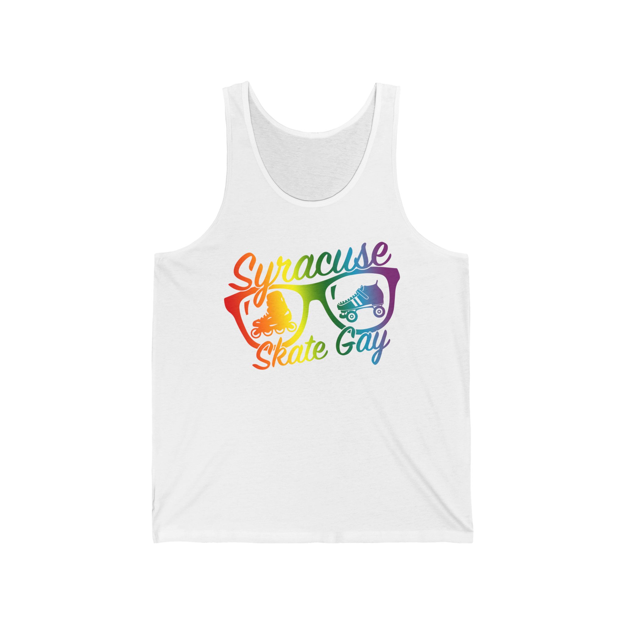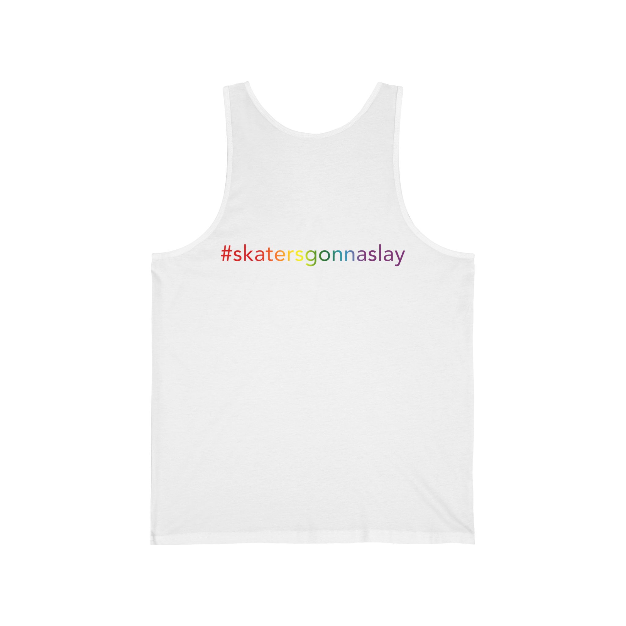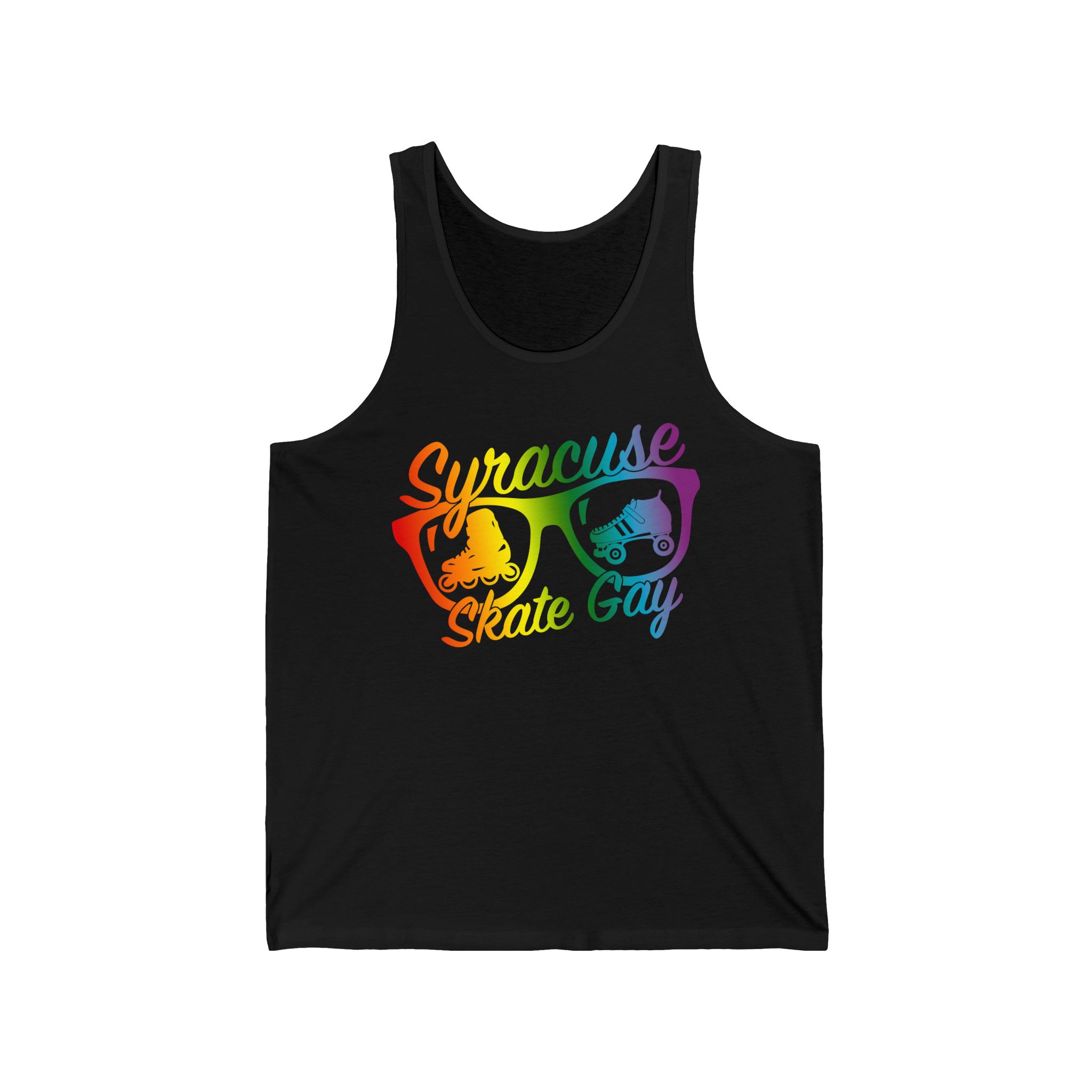 This tank top fits true to unisex sizing. Made with extra-light 100% cotton jersey and equipped with a tear-away label for a scratch-free experience. Available in black or white printed with a rainbow Pride gradient. Please note our SSG Pride merch features a special edition “Syracuse Skate Gay” logo and “#skatersgonnaslay” hashtag on the back.